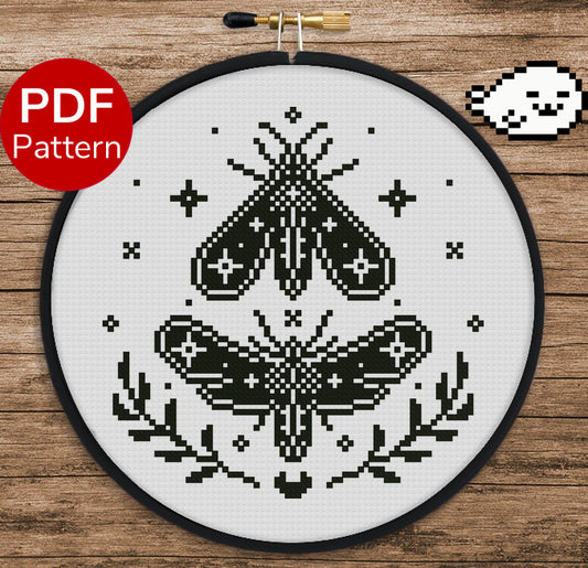 1-Bit Moth - Monochromatic Moth - Cross Stitch Pattern