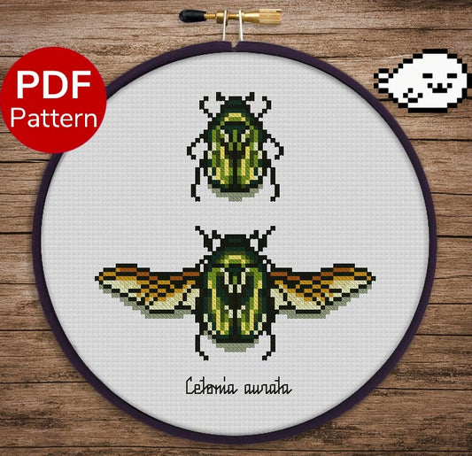 Scarab Beetle - Cetonia Aurata - Green Rose Chafer - Cross Stitch Pattern