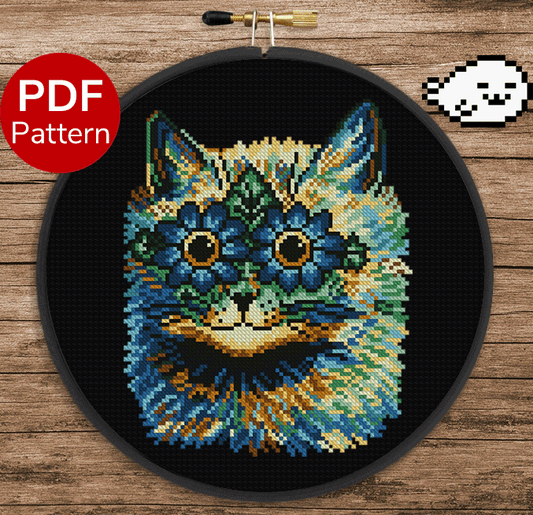 Cat with Daisy Eyes - Louis Wain - Painting Cross Stitch Pattern