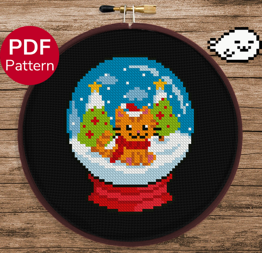 Cat in a Snow Globe - Christmas - Cross Stitch Pattern
