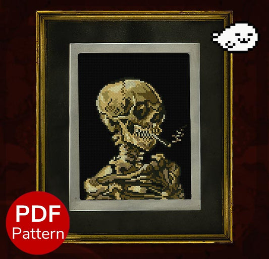 Skull of a Skeleton with Burning Cigarette - Van Gogh - Cross Stitch Pattern