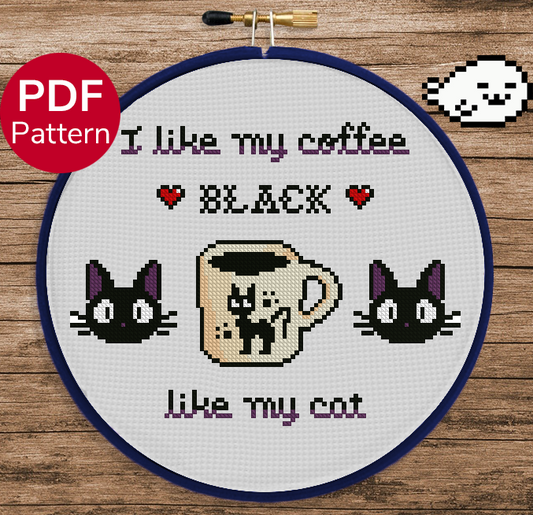 Black Coffe Black Cat - Cross Stitch Pattern