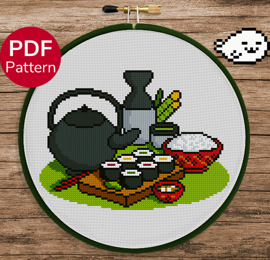 Sushi Roll and Tea - Cross Stitch Pattern