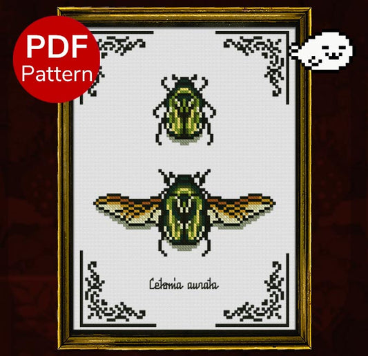Scarab Beetle Framed - Cetonia Aurata - Green Rose Chafer - Cross Stitch Pattern