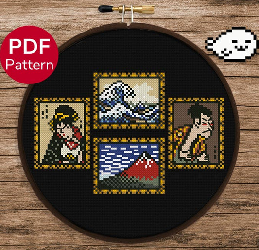 Ukiyo-e Mini Masterpieces - Cross Stitch Pattern - Japan Cross Stitch