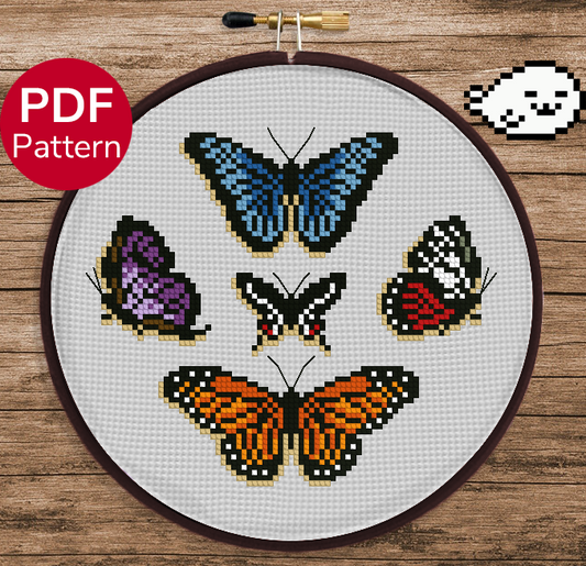 Five butterflies - Cross Stitch Pattern - Butterfly Sampler