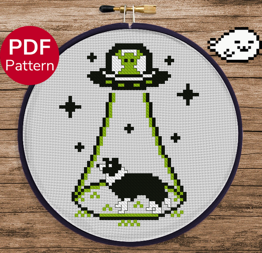 UFO Border Collie Abduction - Cross Stitch Pattern